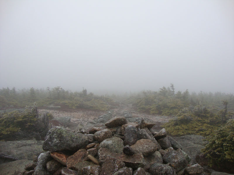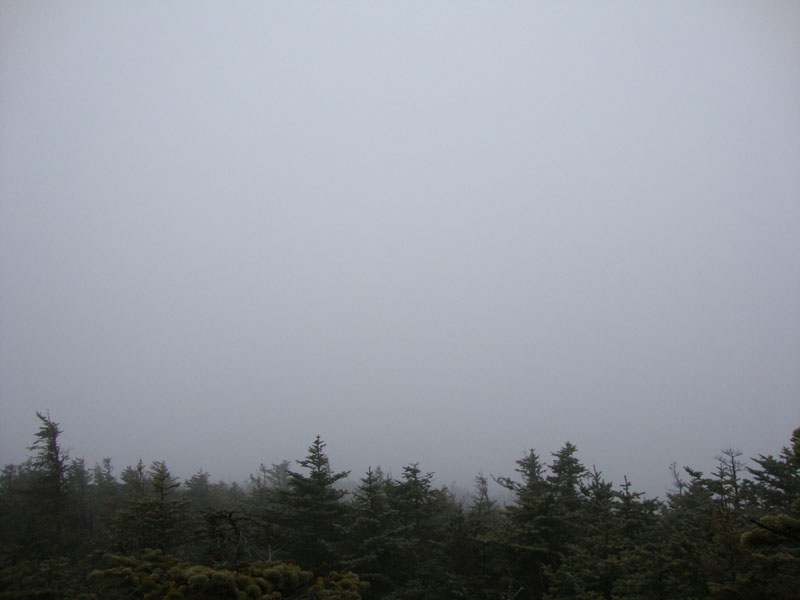 Nearing North Kinsman, there was a bit of rime ice - and a whole lot of cloud. Continuing to South Kinsman, the summit was covered in a fine ice glaze. Once again, still in a cloud.