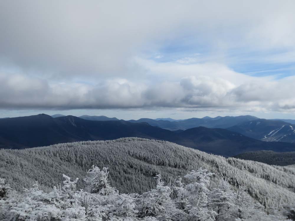 Kinsman Ridge Trail from the junction to the summit of North was very icy. Dull Microspikes didn't suffice. Crampons would probably be overkill. Generally most of the ice was low angle with a dusting of snow on the ground, but some of the scramble ledges were also icy.