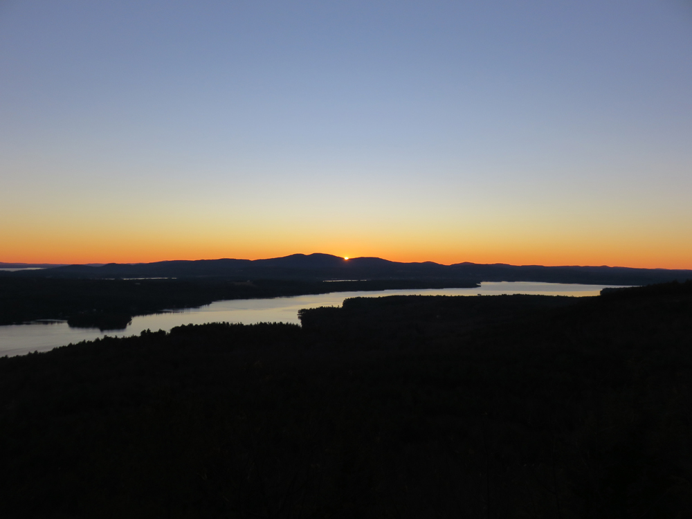 The sunrise over Lake Winnisquam from the Ladd Mountain ledge vista