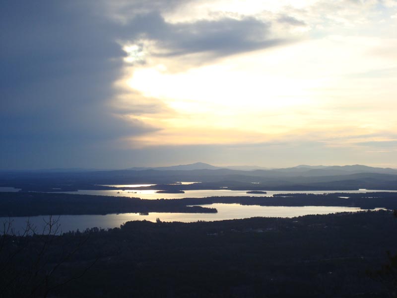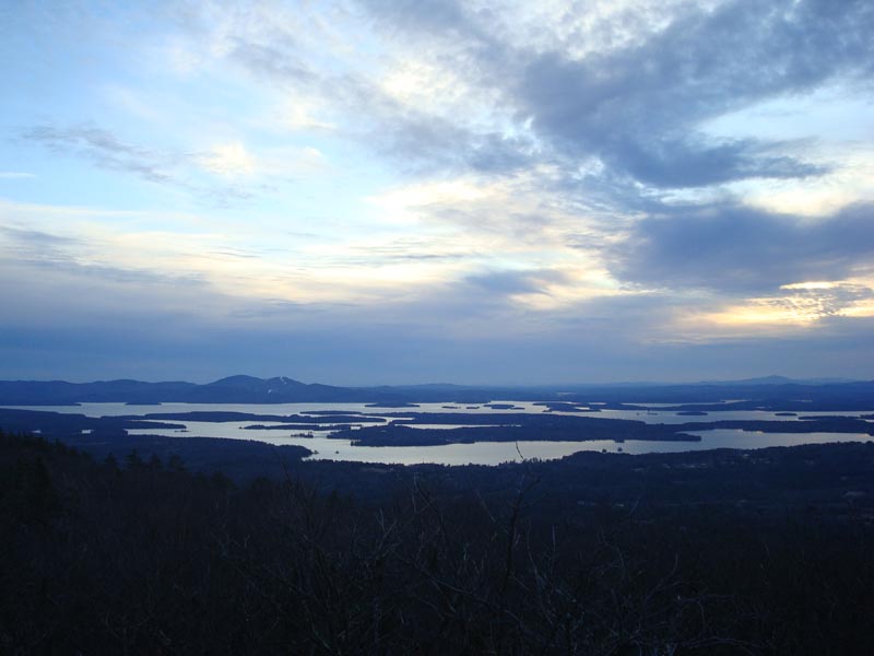 For the descent, all took slightly different yet successful routes up the steep, icy scramble. Beyond that, we were able to make it most of the way down the Banana and Tate Mountain Trails prior to turning on our headlamps. The various blinking lights around the lake, as well as some of the night skiing lights at Gunstock, made for some neat scenery.