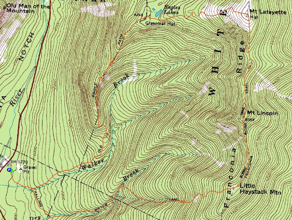 Directions to trailhead: Take Interstate 93 north from Lincoln to the Lafayette Place exit.