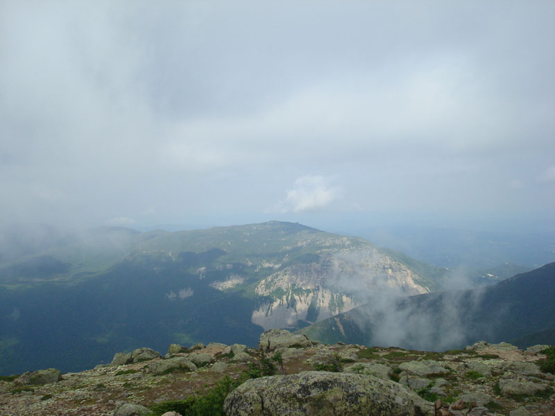 Arriving in the clouds at the summit of Mt. Lafayette, I decided to wait around for some views. After 20 or so minutes, I finally was able to get some glimpses of Garfield and Cannon.