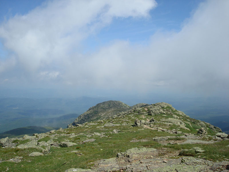 My next stop was Mt. Truman - not labelled on many maps. Since it's a few dozen feet lower than Mt. Lincoln, I had some halfway decent views from it. Above, I could see Mt. Lafayette was in the clouds. The section of trail between Mt. Truman and Mt. Lafayette reminds me of the southern Presidentials - in fact, in the clouds, it almost seems like you're walking near the ocean.