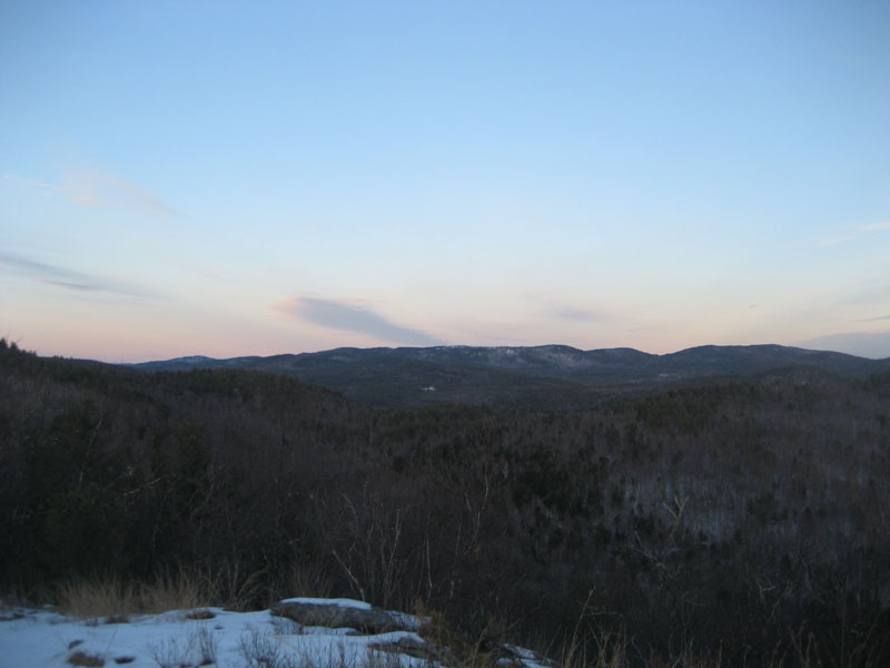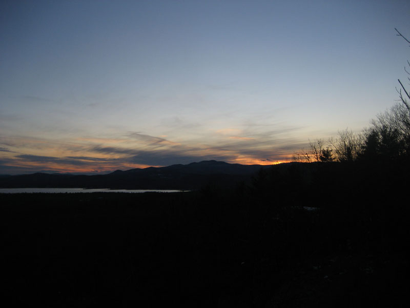 Previously on Mary's Mountain, I guestimated that there would be a slight chance of a sunset perspective from the summit. My guestimate was correct - there was somewhat of a view of the sun setting just north of Mt. Shaw, with plenty of colors visible on either end of the Ossipees. While I was hoping to perhaps capture lots of color reflecting off Ossipee Lake, the clouds weren't quite in the right position. Thus, I didn't wait around too long after the sun dropped behind the Ossipees.