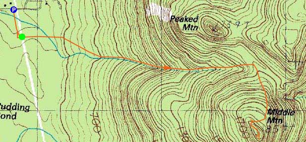 Directions to trailhead: From Routes 16/302 in North Conway, take Artist Falls Road past the railroad tracks. Take a right onto Thompson Road. A small Town of Conway/Pudding Pond Conservation Area signed parking lot will be on the right shortly thereafter.
