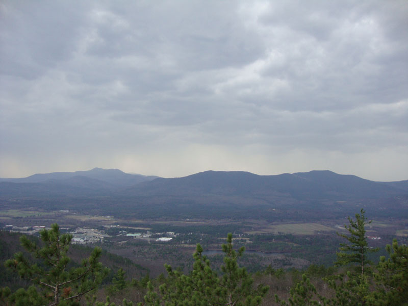Starting at 82 degrees, it was a warm afternoon for an April hike. Fortunately, based upon recent hikes in the general vicinity, I knew I could leave my winter gear (such as snowshoes) behind and travel light, allowing me to jog in places. Reaching the summit without touching any snow (only a few minor patches seen anywhere), I had decent views, though troubling clouds were moving in.