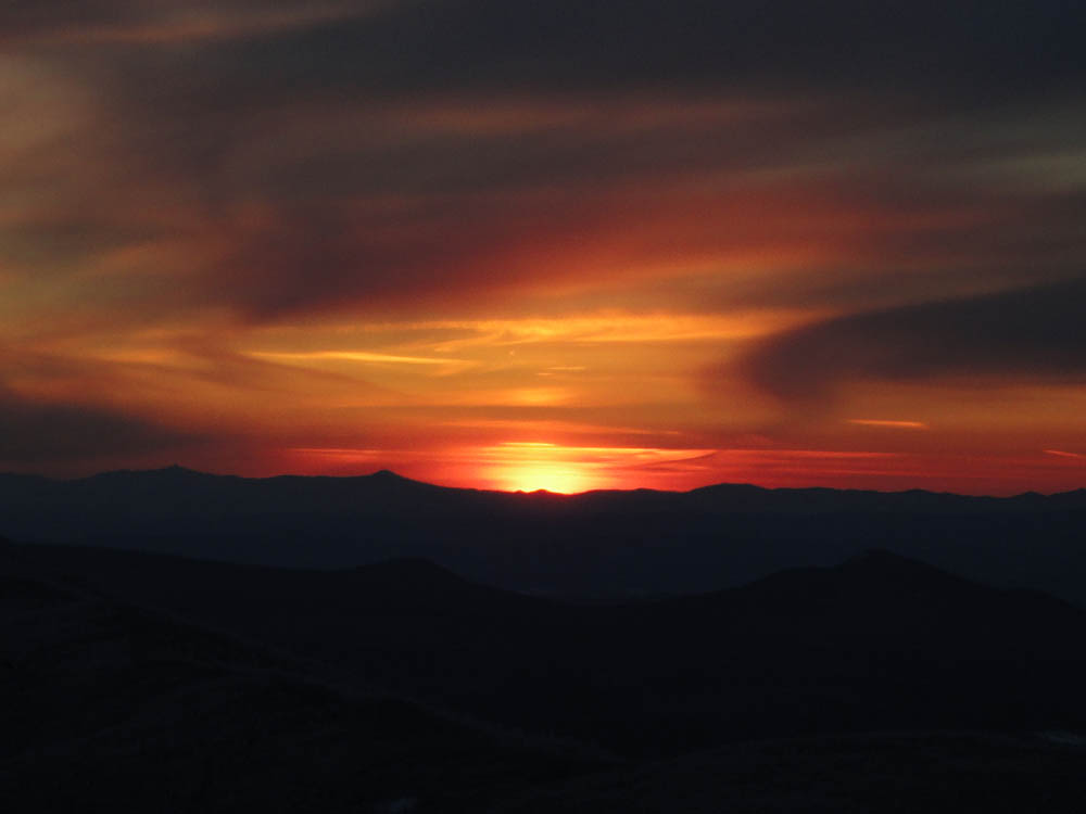 After taking off my snowshoes, I climbed up the steps to the observation deck and was just in time to see a nice sunset to the west. Amazingly, there was no wind.