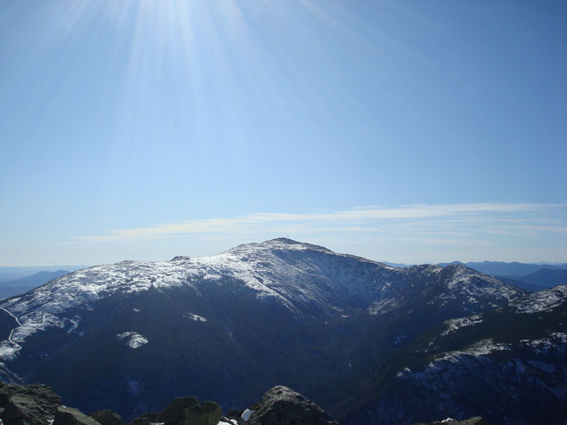 The views from the summit were tremendous - particularly neat was to see the trails at the Wildcat Ski Area covered in white. With warm temperatures and minimal winds, I was able to remain in my tee shirt while eating lunch at the summit.