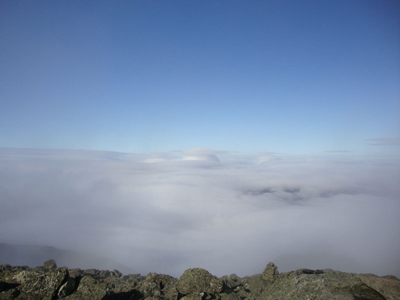 Heading back down the Air Line, I turned onto the Gulfside and descended to the closed hut, as the clouds started to move out again. After another slippery ascent up the Osgood Trail, I arrived at the summit of Mt. Madison with tremendous views - an awesome undercast blue skies overhead. Though I hung out for awhile, I decided not to linger for too long, as I only had about two hours of daylight left.
