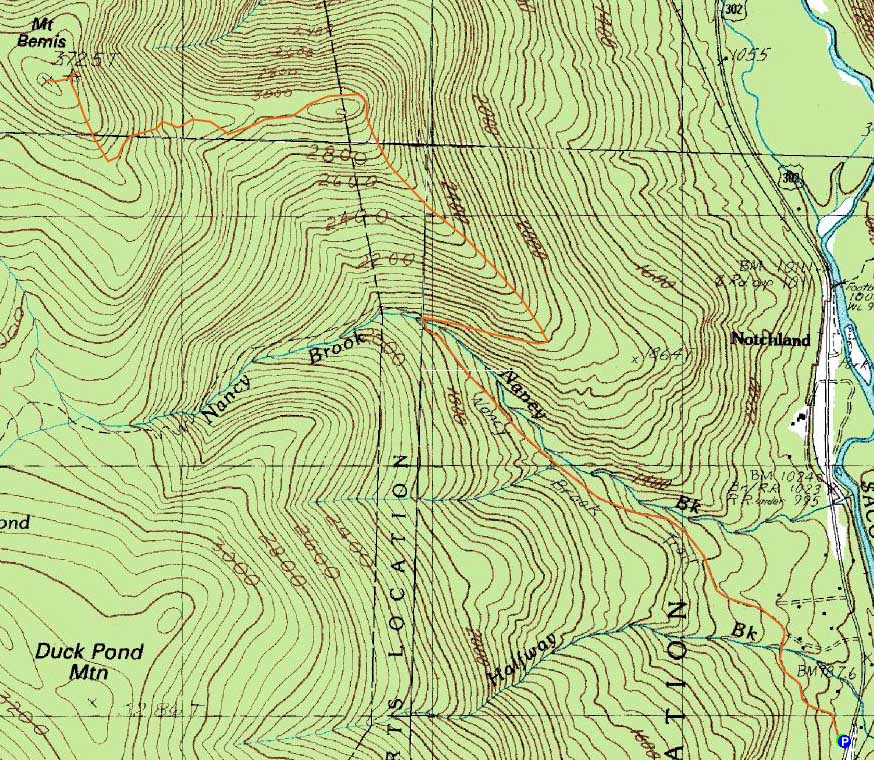 Route: Nancy Pond Trail, Mt. Bemis Trail, bushwhack, (Mt. Bemis), bushwhack, Mt. Bemis Trail, Nancy Pond Trail
