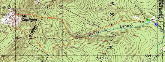 Directions to trailhead: From Bristol, take Route 3A North briefly, then take a left onto Bristol Hill Road. Eventually bear left onto Plummer Hill Road, then take a left onto Thissell Road, then take a right onto Town Pond Road. Town Pond Road eventually joins Mt. Cardigan Road. Mt. Cardigan Road becomes Shem Valley Road at a sharp turn - go straight on it. Parking is located across from the AMC facility. One can also find the AMC Lodge with more ease from Alexandria by following the AMC Lodge signs.