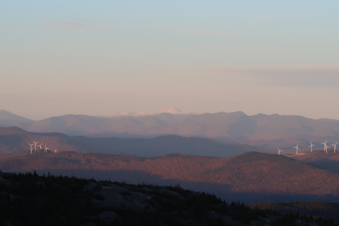 Chilly sunset, but neat to see the snowcapped Franconia Ridge and Presidential Range (as well as a little on Moosilauke).
