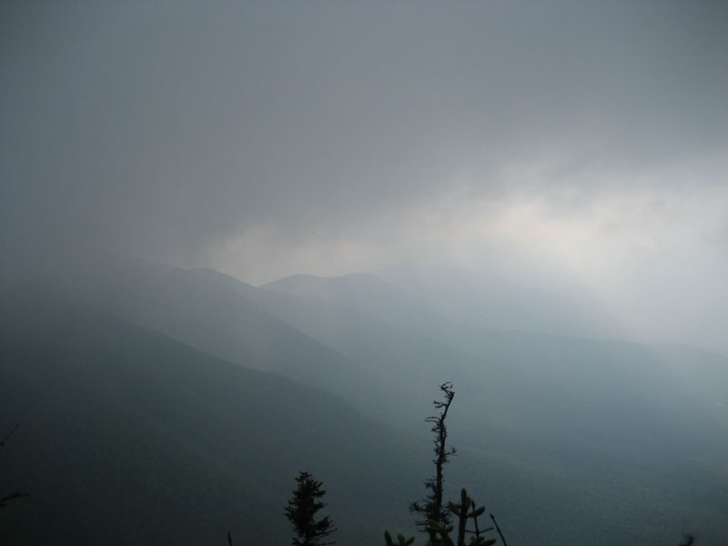 The Mt. Osceola Trail was generally dry, though the rocks were a bit slick. While there were some hazy views from the slide crossing, the summit was in a cloud.
