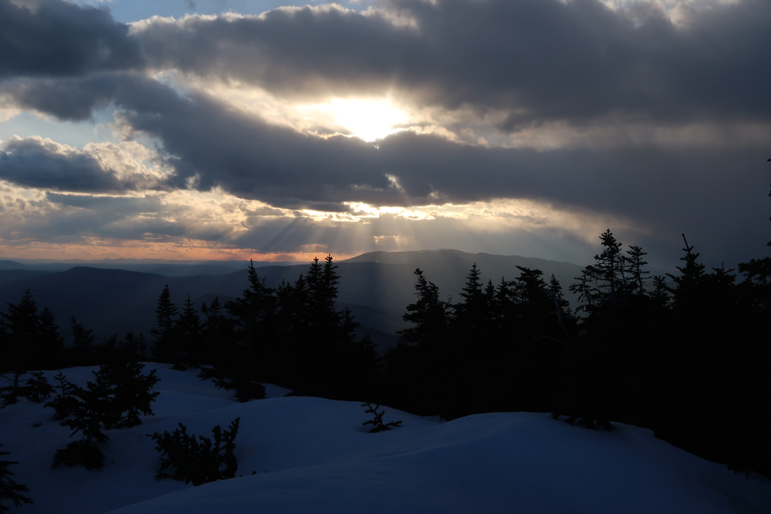 Deep snow between the peaks, probably 5 to 6 feet deep. Bushwhack around the chimney and chimney bypass is what's mostly being used. Did not see much traffic to the highpoint of Osceola (which is beyond the cliffs). Just beyond the high point, no traffic, but worth the trip, as the drifts are still very deep, deep enough to provide 360 degree views (the main reason I returned tonight, as I was staring at fog a few weeks ago).