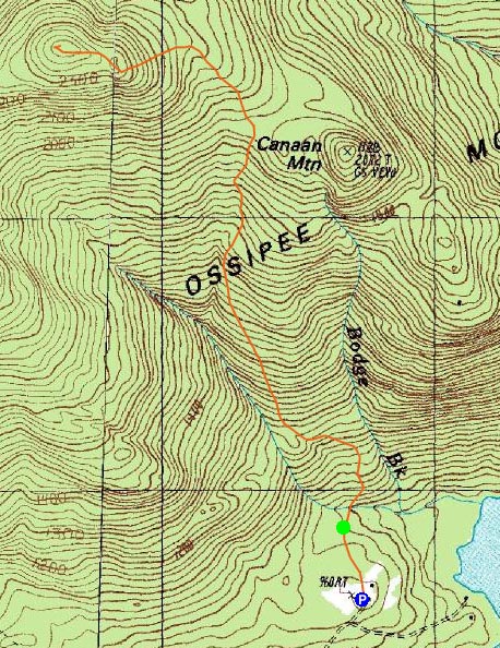 Directions to trailhead: Take 171 southeast from Route 25, past Castle in the Clouds. Take a left onto Canaan Road. The Mt. Flagg Trail trailhead is located downhill, beyond the farm house at Camp Merrowvista. Permission should be obtained to park there from the main office (the camp should be avoided when in session). The Camp is located at the end of Canaan Road, with a parking area across from a white farmhouse, which serves as the main office.