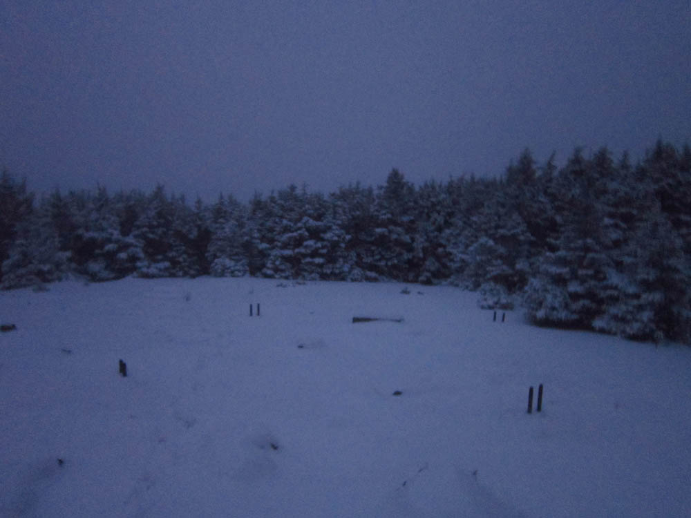 Afternoon/evening hike to Mt. Hale and back. Though there was 1-3" of new powder, the snowshoes never left the pack. The approach to the snowmobile bridge over the Little River had been washed out by Hurricane Irene, but was passable on foot.