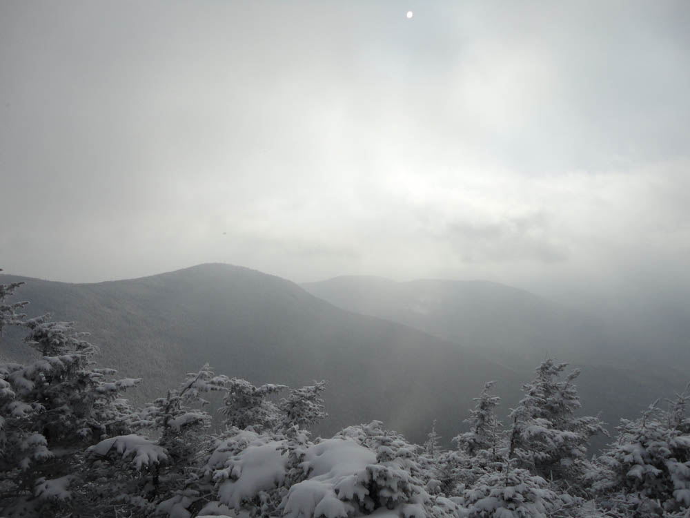 Somewhat limited views due to snowfall from the North Hancock viewpoint