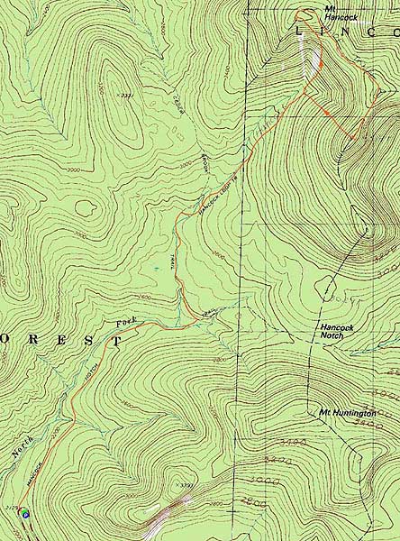 Directions to trailhead: Take Route 112 west from Route 16. After going over the pass, continue down hill a bit. The Hancock WMNF fee parking area will be on the left, just before a hairpin turn.