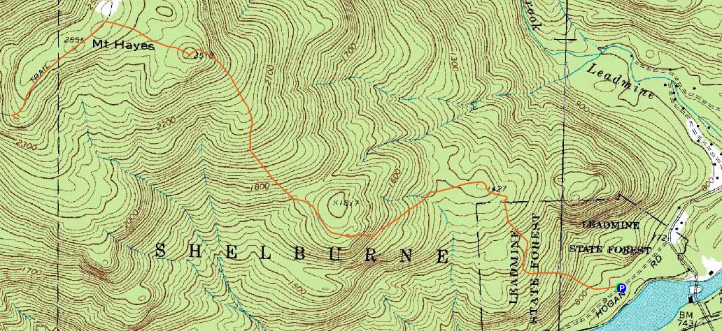 Route: Centennial Trail, Mahoosuc Trail, (Mt. Hayes), Mahoosuc Trail, (south ledges), Mahoosuc Trail, (Mt. Hayes), Mahoosuc Trail, Centennial Trail