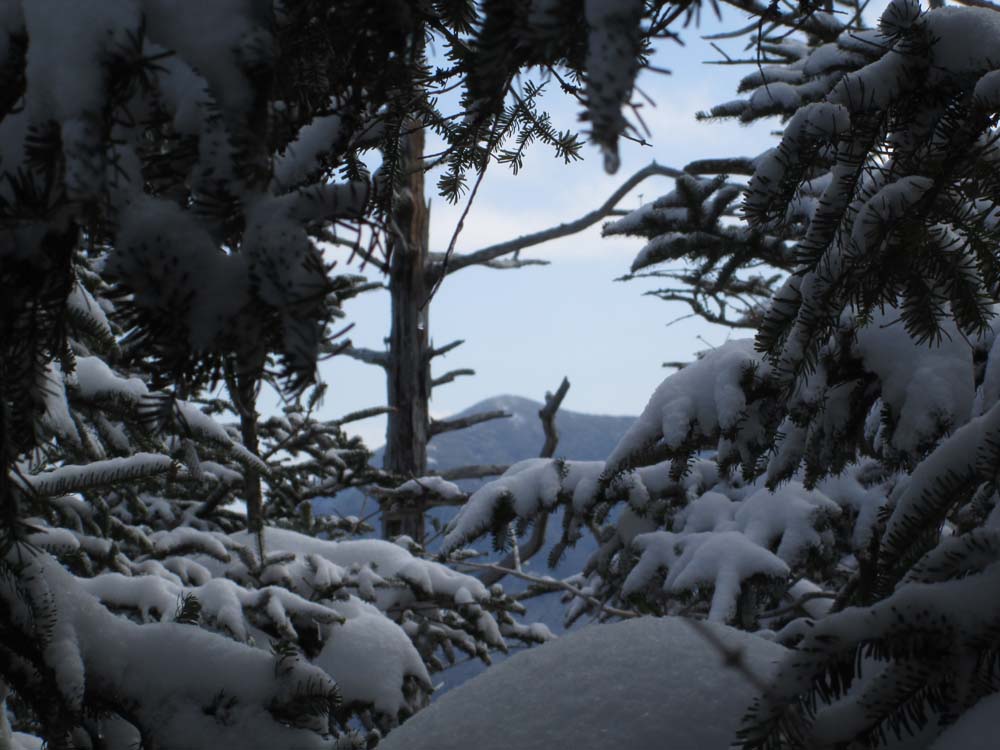From South, we stayed on the ridge on open woods for awhile, before getting into some thicker stuff before reaching the summit. The snow was a bit more consolidated on the ridge, making for easier trail breaking in the flatter areas. From there, we retraced our tracks back out.