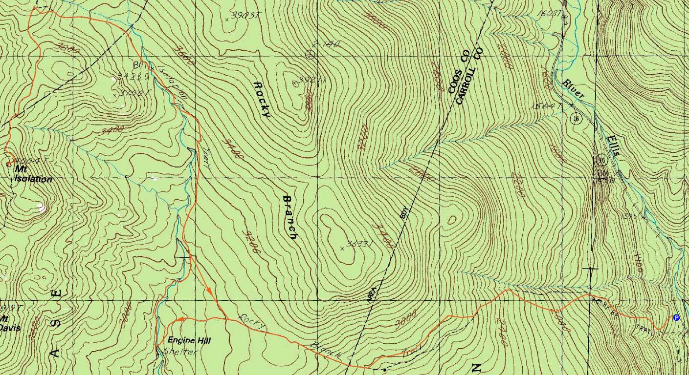 Route: Rocky Branch Trail, Isolation Trail, Davis Path, Isolation Spur, (Mt. Isolation), Isolation Spur, Davis Path, Isolation Trail, bushwhack, Rocky Branch Trail