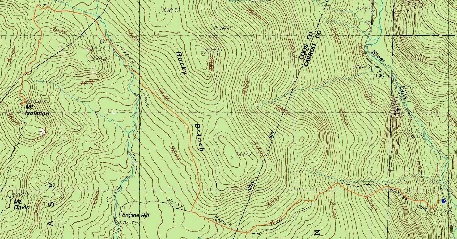 Route: Rocky Branch Trail, (Engine Hill bushwhack), Isolation Trail, Davis Path, Isolation Spur, (Mt. Isolation), Isolation Spur, Davis Path, Isolation Trail, (Engine Hill bushwhack), Rocky Branch Trail