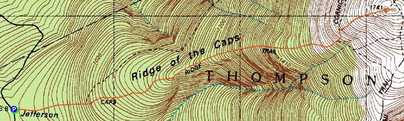 Directions to trailhead: Take Route 302 West from Bartlett into Carroll. Just after Saco Lake, take a right onto Mt. Clinton Road. Cross over Base Road and continue on Jefferson Notch Road. At the high point of the road, the WMNF fee parking lot will be on the right. The Caps Ridge Trail trailhead is at the back of the parking lot.