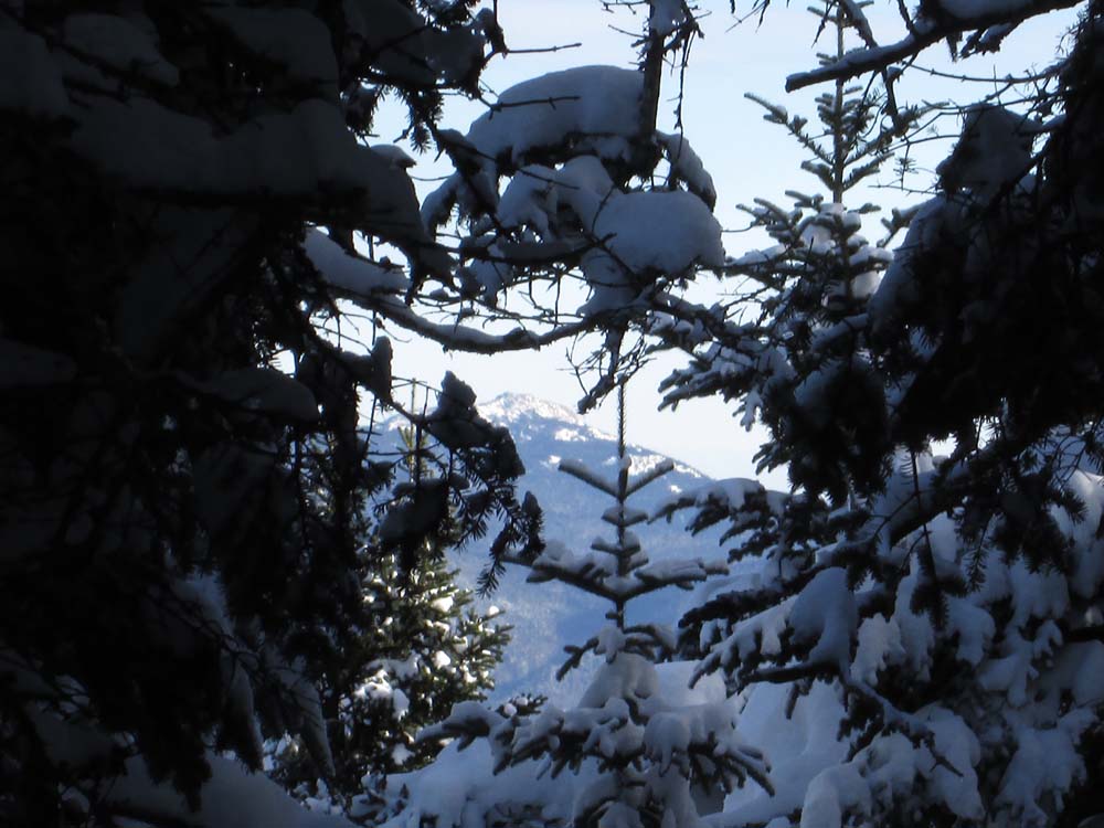 The first few tenths of the Livermore Trail was plowed due to an active logging project. Thereafter, the sum of the recent storms resulted in breaking trail in about 18-24" of powder. We broke up to the last water crossing (where the trail climbs steeply to the left), the headed up into the birch glade and worked our way around the false peak (staying south of the ridge to avoid blowdown and thicker spruce) to the recognized summit, generally in good woods.
