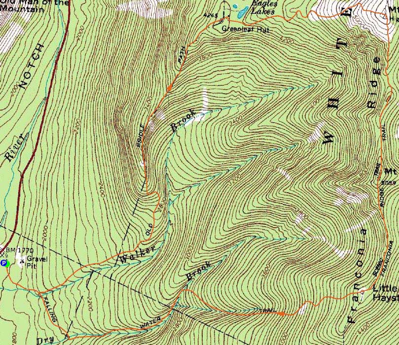 Directions to trailhead: Take Interstate 93 north from Lincoln to the Lafayette Place exit.