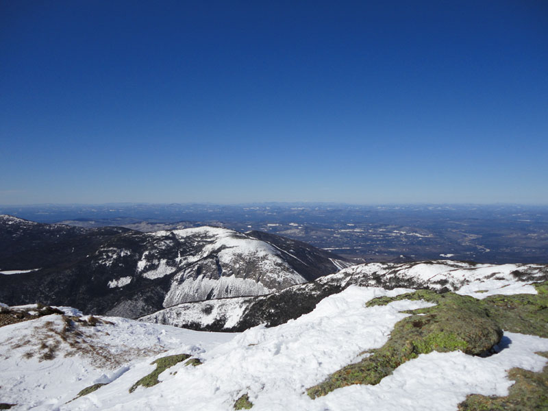 Hearing some stiffer than predicted winds, we opted to go fairly nonstop for the first portion of above treeline travel. Climbing to Lafayette resulted in walking directly into the sustained winds, slowing progress. From the summit of Lafayette, we had impressive views in all directions, including snow-covered peaks in the Green Mountains.