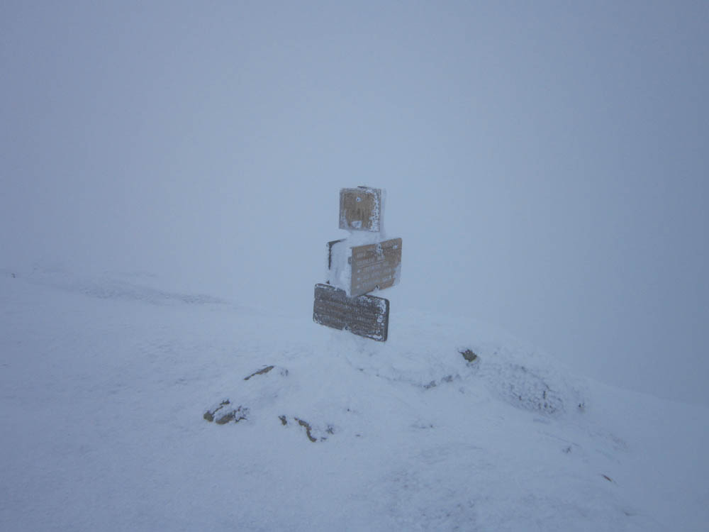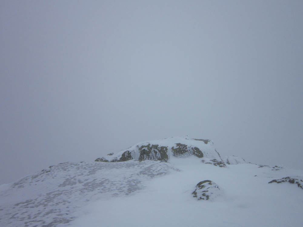 Moderate winds on the ridge with limited visibility. Needed traction for the ice field below Mt. Lafayette.