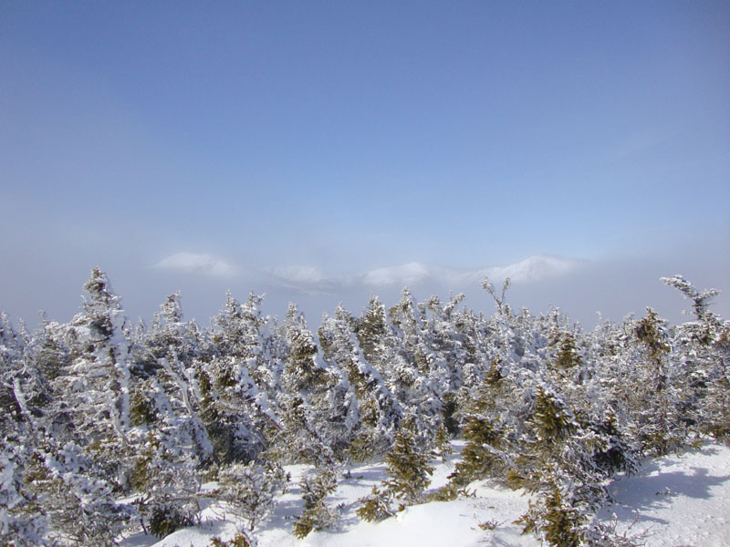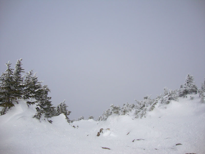 The next stop was Middle Carter, once again with brief views. Beyond there, the trail was a bit drifted as we worked our way to South Carter - no views from the view ledge, due to the fog.