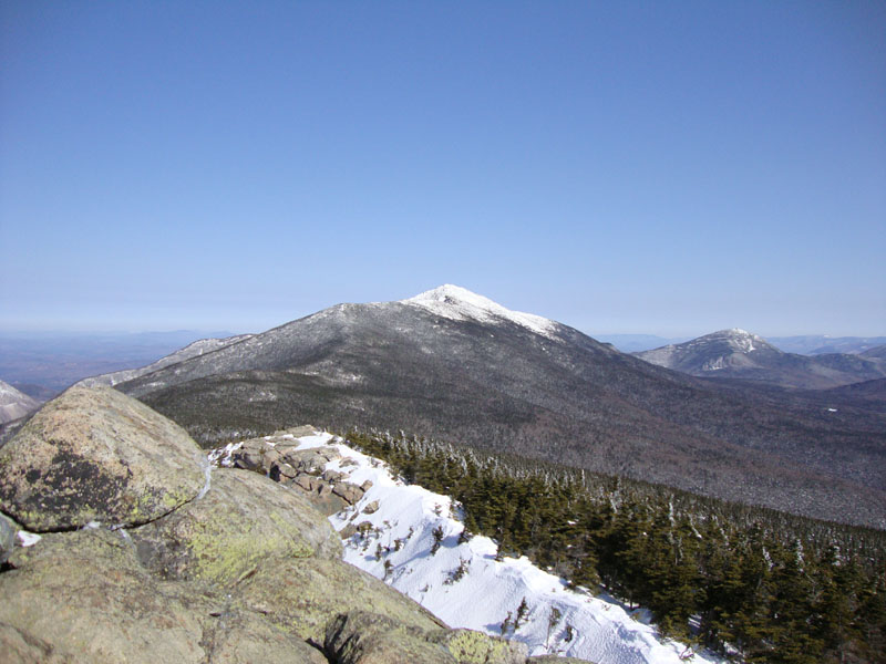 The next stop was Mt. Flume. The Franconia Ridge Trail was in good shape between the peaks. By the time we reached Mt. Flume, the winds had pretty much ceased, resulting in a nice extended spring stay.