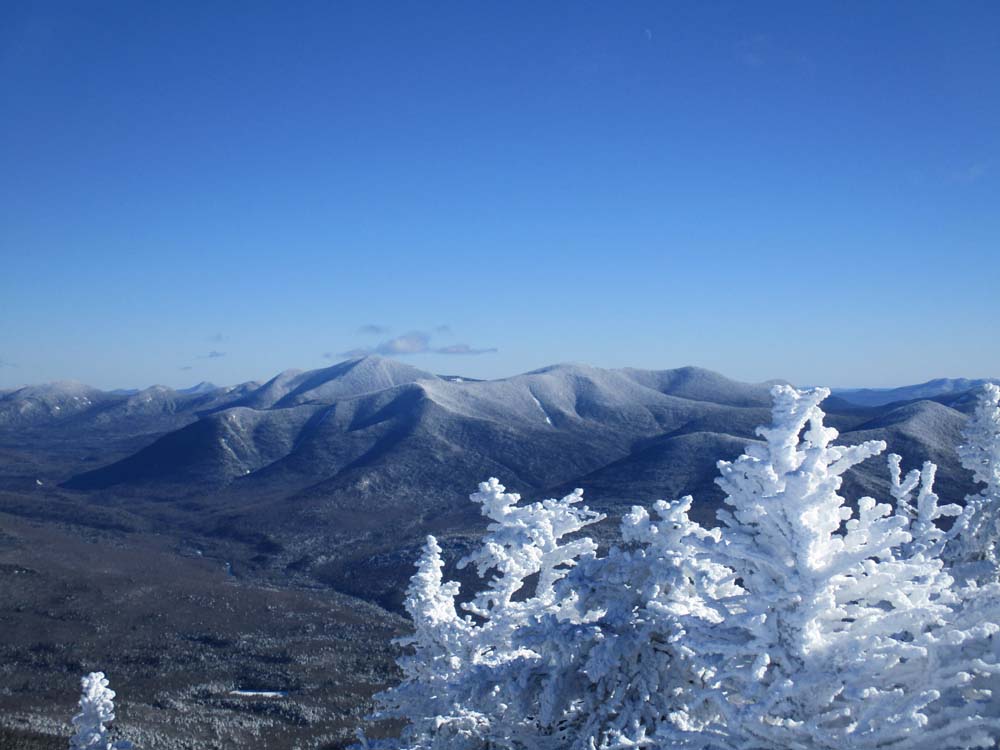 Cold and windy (enough to move one around this morning) on both summits. Blue skies and snow covered trees made for great scenery.