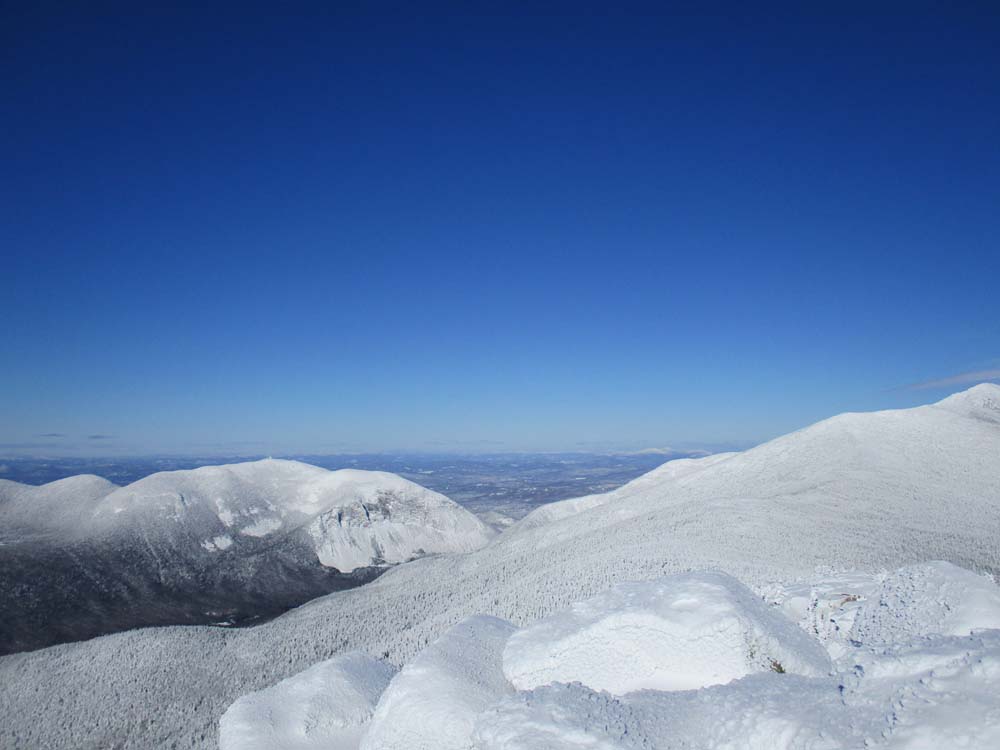 Herd path to the elbow was broken out this morning, but is still not well consolidated. By the looks of it, someone had come up from the Whitehouse trailhead yesterday and turned back at the water crossing. A pair of hikers broke out from there to Liberty this morning; great effort! There was 1 to 2 feet of powder (with deeper drifts) from the back to back storms earlier in the week. Snowpack on the ridge is approaching the signs and blazes, meaning there's a good 5-6 feet. No tracks heading northbound on Franconia Ridge. Noted a set of snowshoe tracks on lower Flume Slide junction, but it looks like they were as the result of turning back.