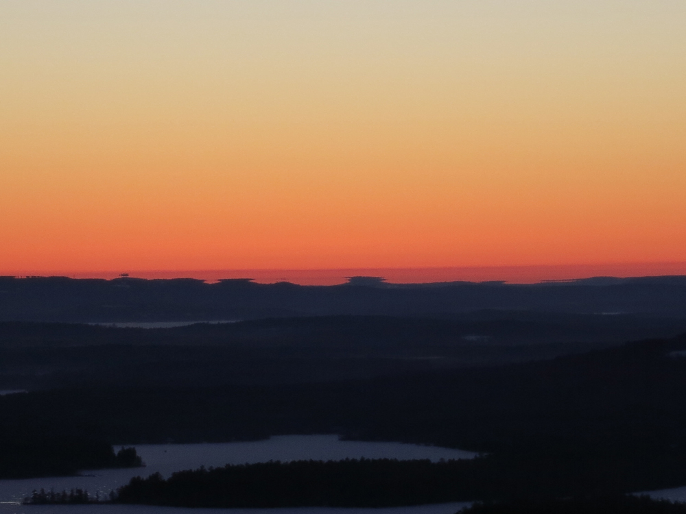 Crawford Ridgepole was mostly drifts, ranging from ankle to knee deep. Fun breaking it out with the rising snow, as each snowshoe step threw snow into the air which lit up with the alpenglow. Also a neat visual distortion this morning, as distant peaks to the east appeared to have flat ridges or inverse looking peaks.