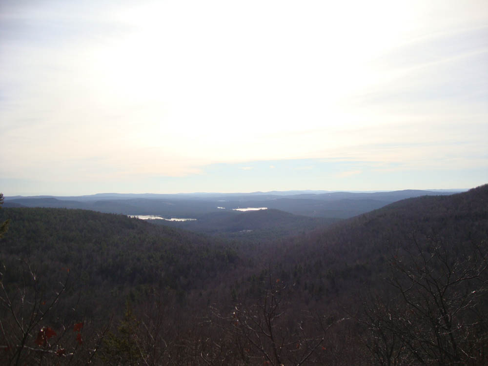 Reaching Mt. Mack, we had hazy but good views from two different viewpoints, then headed to Mt. Klem. After a short bushwhack to that summit, we headed down the Quarry Trail, steeply into the col then up to Rand Mountain. The descent and ascent were made a bit challenging due to slippery leaves and black ice. After taking in views from the near summit vista, we went to the highpoint, then headed back to Mt. Klem.