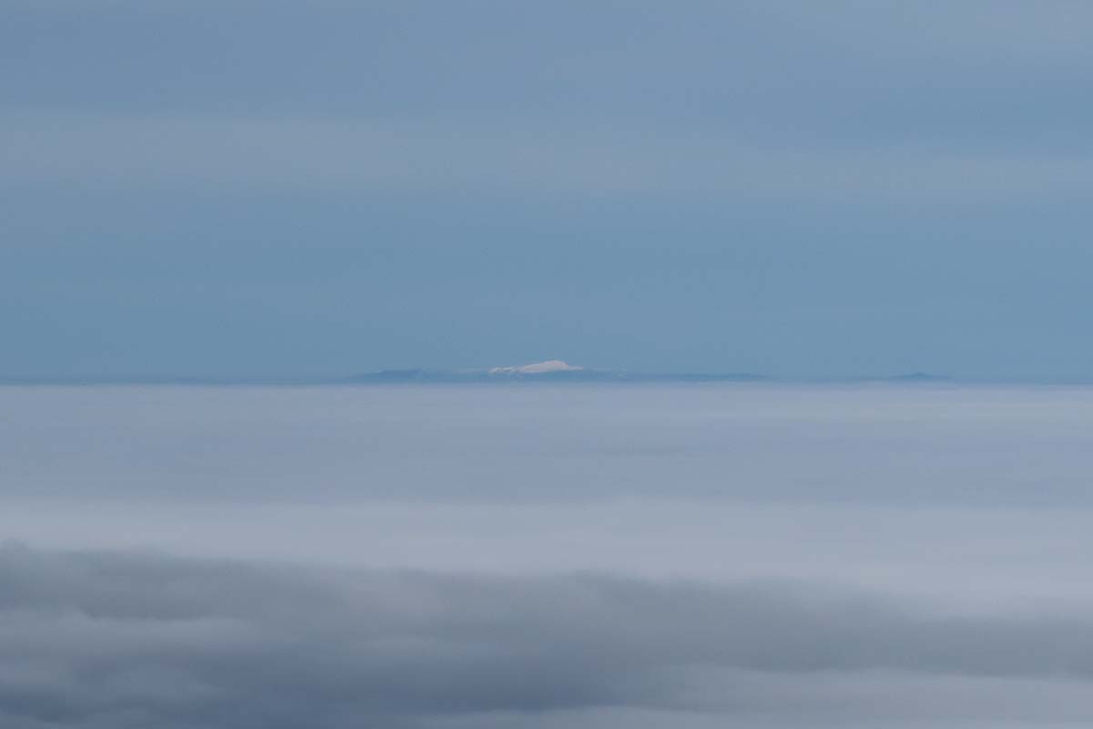 We continued past the Air Line, then did a zigzag up the snowfields to Adams. Good snowshoeing. We then descended the snowfields to cut the corner, staying just west of Thunderstorm Junction, then contouring the side of Sam Adams to avoid a little lost elevation.