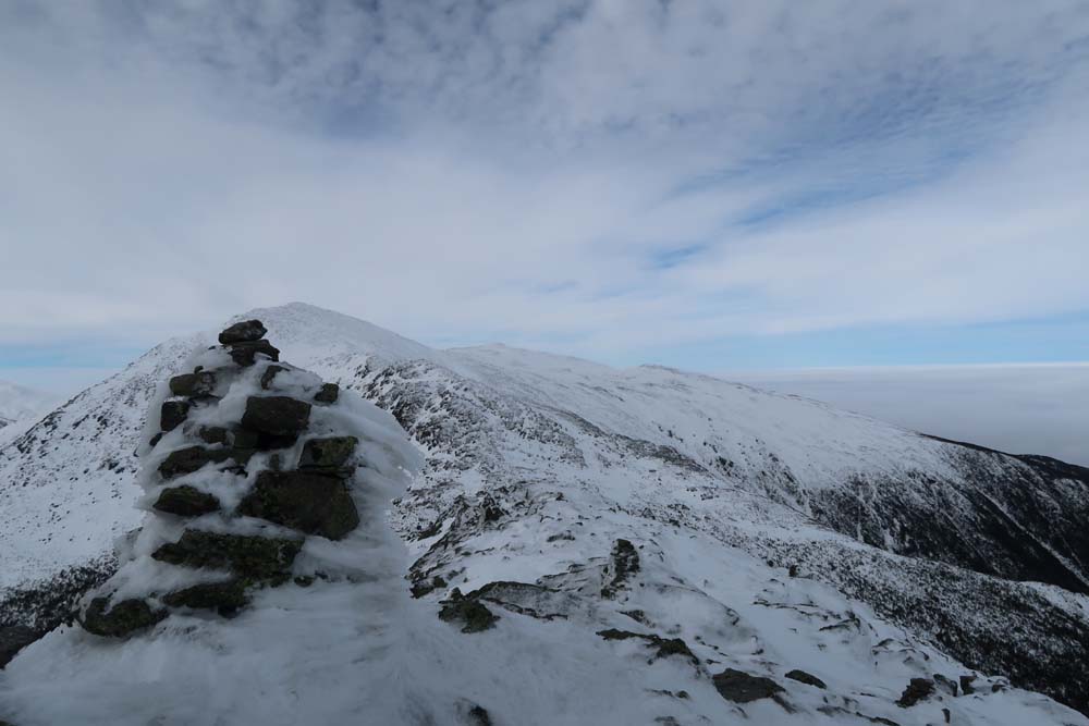 Route: Valley Way, Osgood Trail, (Mt. Madison), Osgood Trail, Gulfside Trail, Air Line Trail, (Mt. Adams), Lowe's Path, Israel Ridge Trail, Gulfside Trail, Jefferson Loop, (Mt. Jefferson), Jefferson Loop, Gulfside Trail, (Mt. Washington), Crawford Path, snowfield, (Mt. Monroe), snowfield, Ammonoosuc Ravine Trail