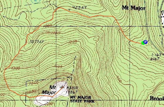 Route: Mt. Major Trail, Brook Trail, Major/Straightback Link, (Mt. Major), Major/Straightback Link, Brook Trail, Mt. Major Trail