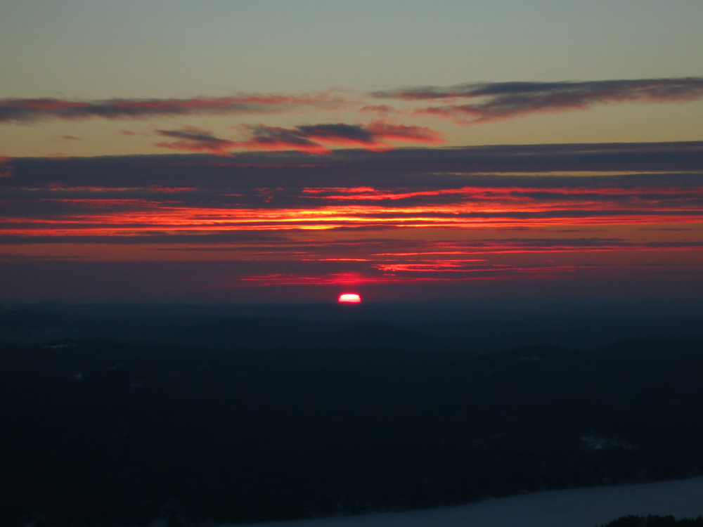 Ascended via Bee Line and descended via Mt. Major Trail. With the exception of some drifts up high, trails were generally packed powder. A few choppy areas on Bee Line (booted, so probably pretty awkward if attempting to snowshoe), as well as a few slippery areas on upper Mt. Major Trail due to buttsliders. Blue ice areas generally pretty well covered. I was able to bareboot the ascent without issue, but light traction would be helpful for descent. The Brook Trail and Boulder Loop Trail also appear to be decently packed out for booting. Snowpack is generally about 6-10 inches.