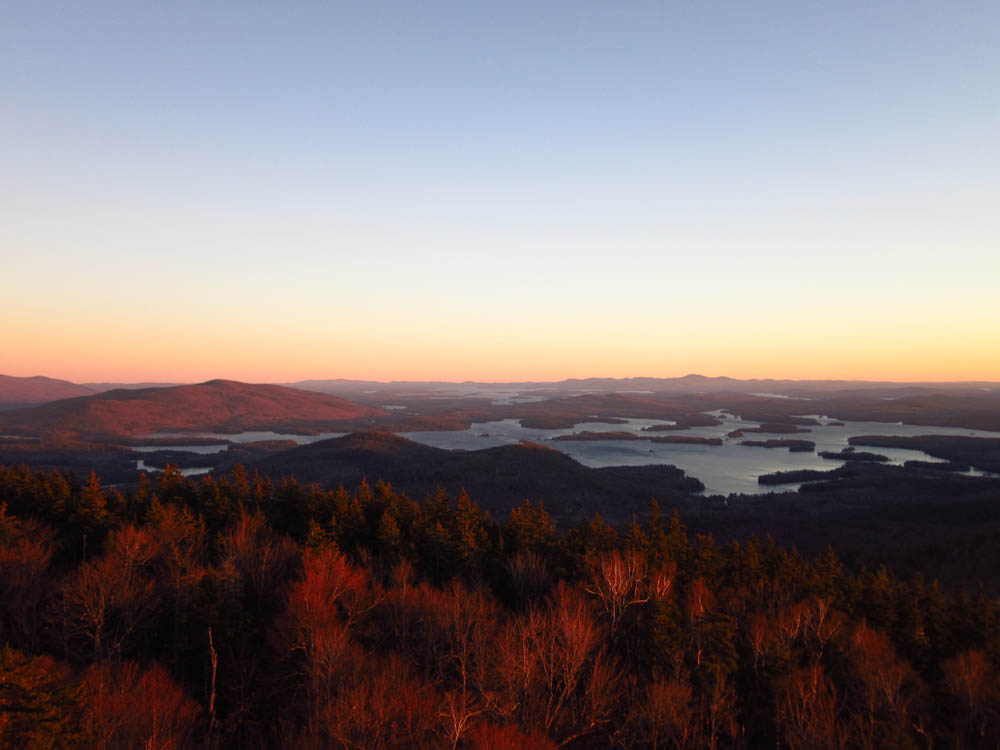 Looking at Squam Lake, Lake Winnipesaukee, and the Belknap Range from the Mt. Morgan ledges