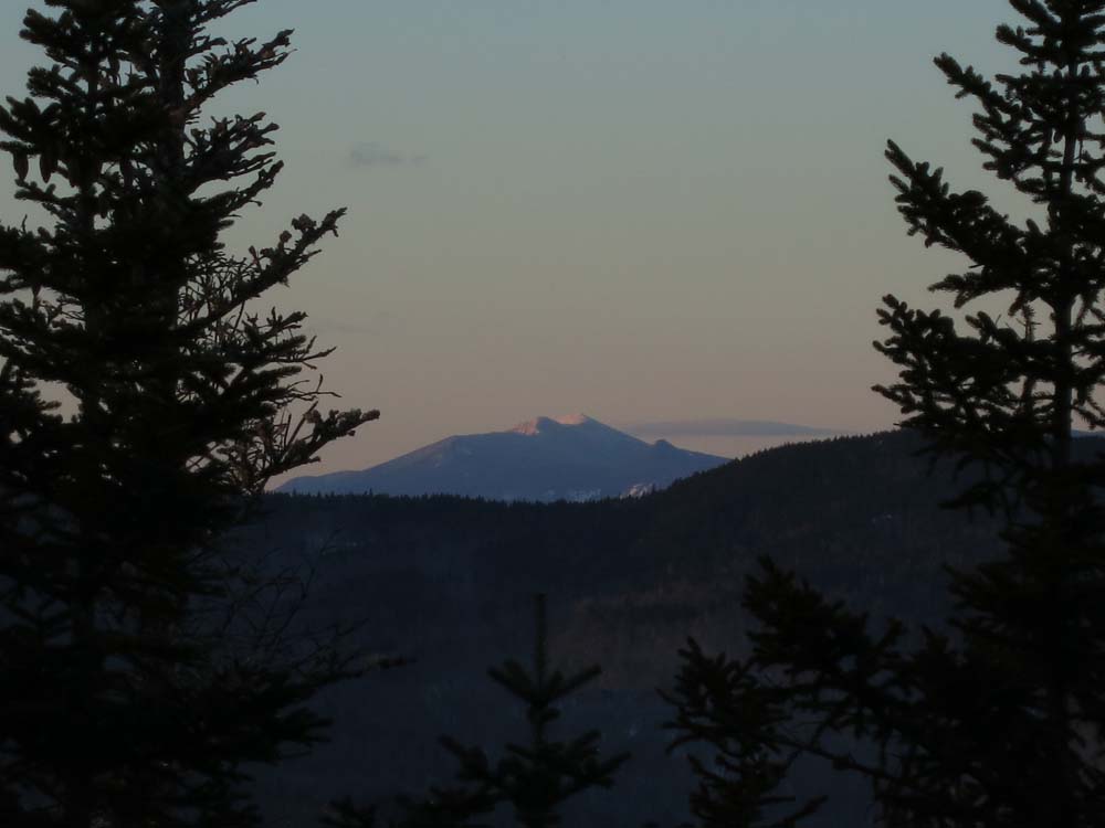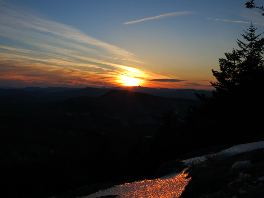 Trail had a breakable crust on top of about half an inch of granular and previous snowpack. Probably about 3-4" in the woods. Normally wet areas were wet (in the flats prior to the climb up to the ridge, and then on the ridge in the vicinity of the cliff junction). A few avoidable areas of blue ice. Near summit ledges were also coated in ice, but I was able to get around without putting on Microspikes.