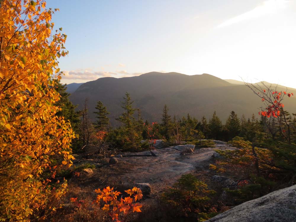 Mt. Oscar, also known as the West Mountain area at Bretton Woods. The summit ledges are just behind the ski area (this time of year, you can sit on the ledges and never know you're next to a ski area) and feature commanding views toward Zealand Notch, as well Mt. Hale and the Sugarloaves. Presidential views attainable from nearby ski trails.