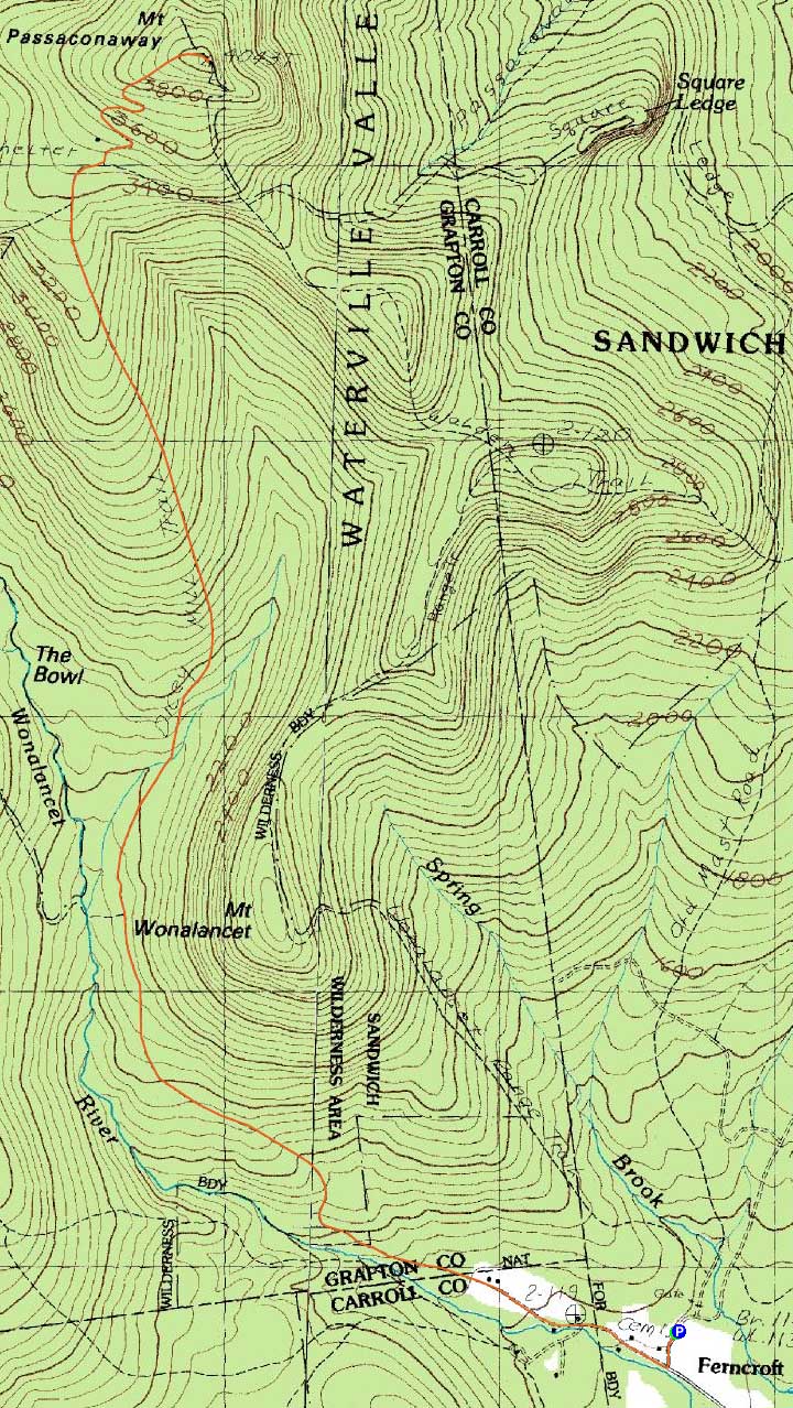 Directions to trailhead: Take Route 113A to Wonalancet, then take Ferncroft Road. The trailhead (the road) and parking lot are both on the right next to the pasture.