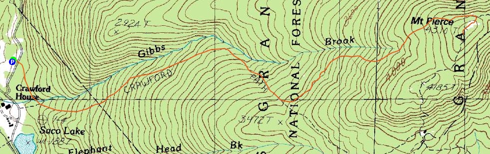 Directions to trailhead: Take Route 302 West from Bartlett into Carroll. Just after Saco Lake, take a right onto Mt. Clinton Road. Shortly thereafter, take a left into the WMNF fee parking area driveway and Crawford Connector trailhead.