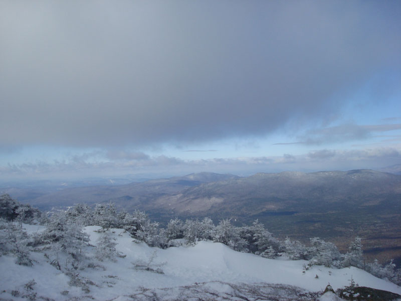 After making the tough descent in the high winds off the loop trail, I was back on the Crawford Path working my way across the windy ridge. Suddenly, things began to lighten up and visibility started to improve dramatically (though, my goggles were iced up so badly at this point that I could only see a few blurry feet in front of me). Sure enough (without goggles), I could see Bretton Woods and Mt. Isolation - after being in limited visibility for hours, I couldn't help but start yelling!