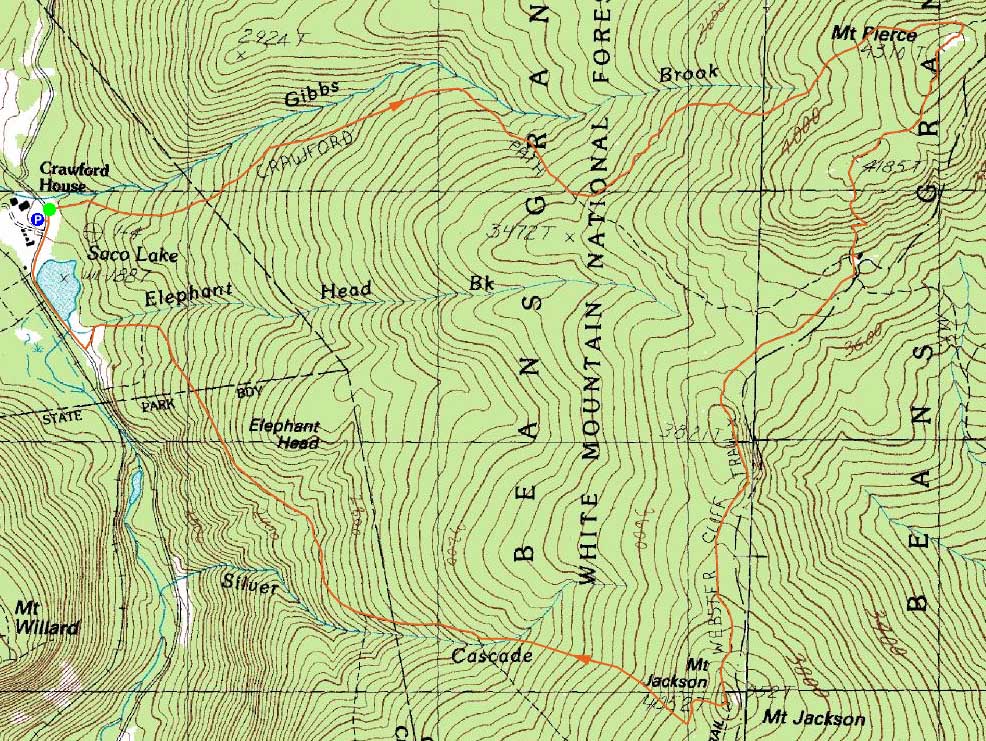 Route: Crawford Path, Webster Cliff Trail, (Mt. Pierce), Webster Cliff Trail, (Mt. Jackson), Webster-Jackson Trail