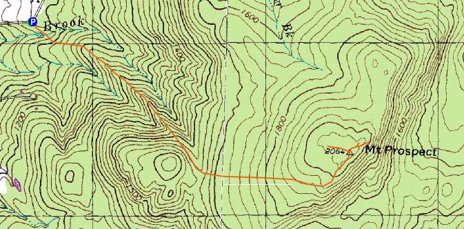 Directions to trailhead: From Meredeth, take Route 25 west, then take a right onto Route 175 north. Just prior to the 175A junction, take a right onto Mt. Prospect Road. After passing Prospect Ridge Road on the right and dipping down a bit, the road climbs and soon turns to the left. The trailhead is on the right (two granite columns laying on their side). There is some room to park on the side of the road next to the trailhead.