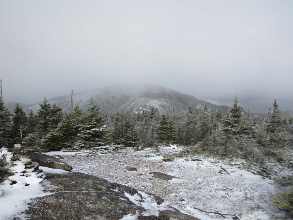 Some of the angle ledges on the side of Mt. Resolution on the Mt. Parker Trail had ice, making for tricky going. The bushwhack to the highpoint was unpleasant, due to bitter winds and wet/snowy woods. Limited views from the open summit area (highest point in my two visits seems to be a small tree with a cairn built into it) due to the blowing snow.